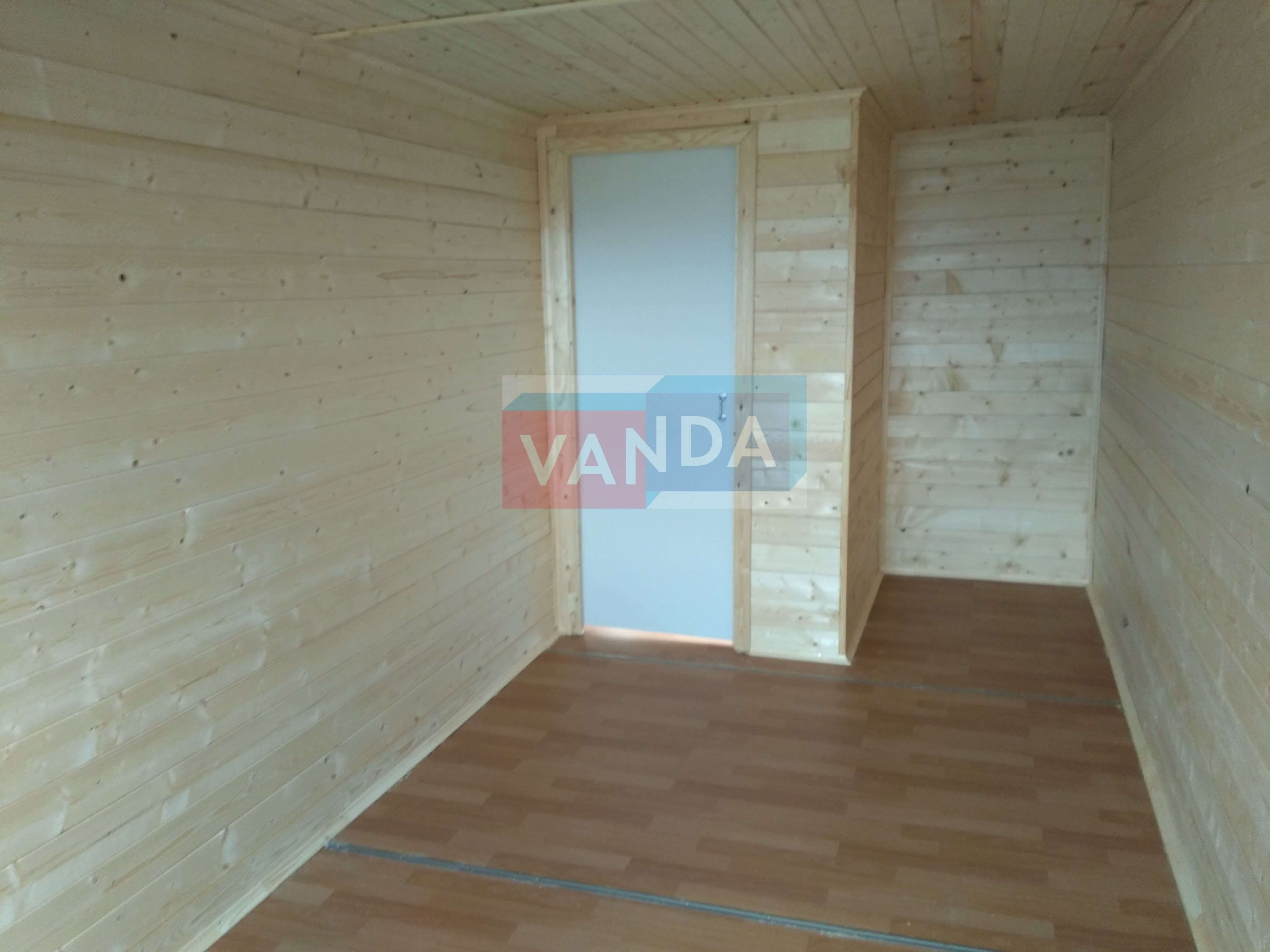 Металлическая бытовка с тамбуром 5,85 x 2,4 - Вагонка деревянная