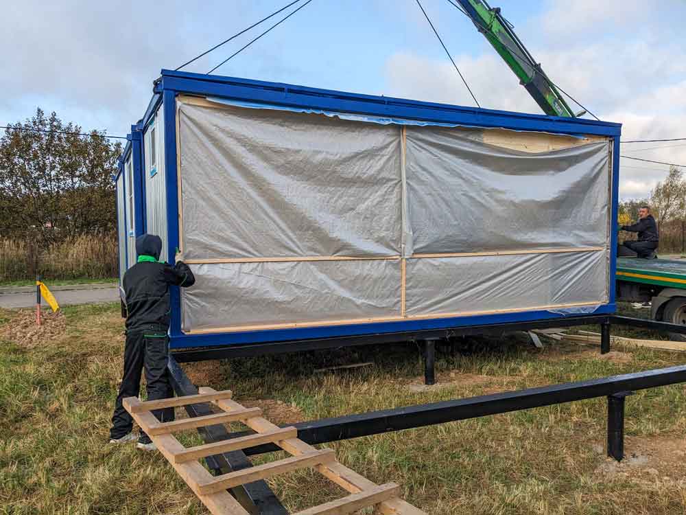 У нас большой крытый производственный цех, площадь которого позволяет собирать несколько конструкций одновременно и независимо от погодных условий, работа не останавливается не на минуту. В штате компании всегда работают высококвалифицированные специалисты, разделенные на бригады, благодаря этому нам удалось наладить процесс сборки так что простоев в работе нет и процесс изготовления большого блок-контейнера занимает всего пару дней.